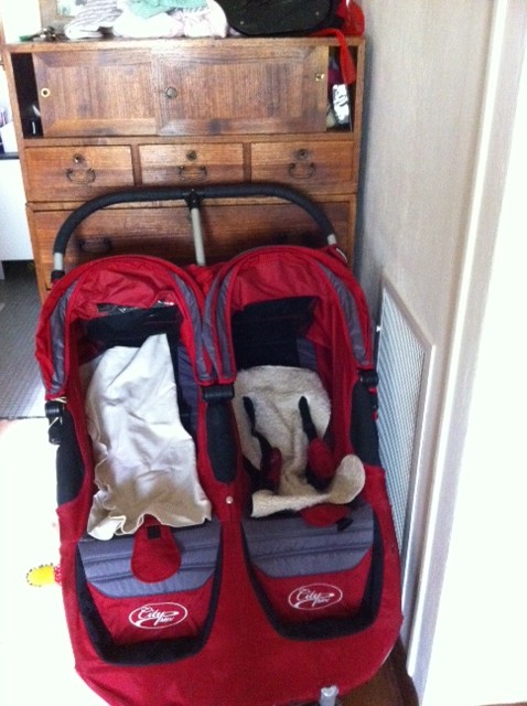 That was two days ago now. We’ve put the pram outside for the moment, leaving the dresser exposed. Dad has also borrowed a child-sized plastic house from the toy library that distracts them from the dresser, and I’m now grateful that when not distracted by the plastic house, they can only reach the bottom two drawers rather than all six.
