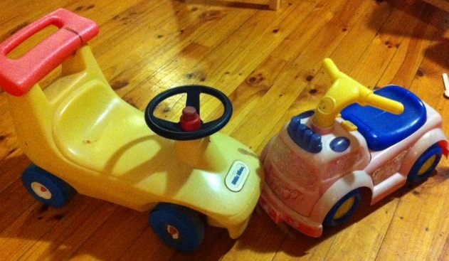 10.15am Playgroup. Phew. They are fascinated by any babies present and distracted by the other children, toy cars and activities. I’m flat out cutting up fruit for morning tea, writing receipts for payment, making sure any new people feel welcome and discussing with the other organisers how the fence building/lockable storage/library/website projects are going. Still more relaxing than having the girls on my own.