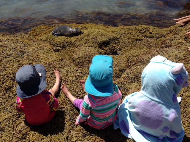 We spent most of our days with Lola and her mum, with occasional outings with Lola’s six year old brother Louis or one of the older cousins. There was a pony-riding outing, sessions at the wonderful community arts centre, supermarket trolley rides during shopping trips, a game or two of tennis, and rides at the tiny summer fair. There was a speedboat ride, playing with Lola’s toys and the older cousins’ two-wheeled scooters, picnics by the playground, hair-braiding and beach time. One day we sat and watched two small seals playing and sunning themselves near the rockpools. The next day the girls examined a small, dead seal at the same place.