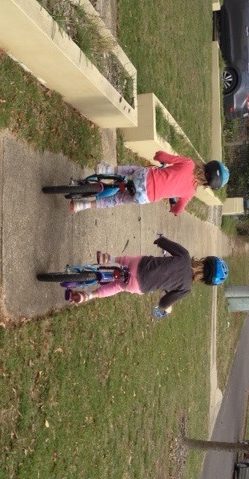 The girls were really getting the hang of it by now: stopping by roads, keeping to the left. We found a small park and stopped to play there, it was a lovely green space taking up a rectangular area between a whole block of two-storey apartments fringed by yellow-leafed trees. Off again, Lara whizzed through the leaf litter on the side of the road, leading the way where I let her. We stopped at another two parks before we got home, the last one being our local school containing monkey bars where they practised ‘the death drop’ that some older children had taught them. Once home, they parked their bikes carefully under the eaves where they wouldn’t get wet and went inside to play.