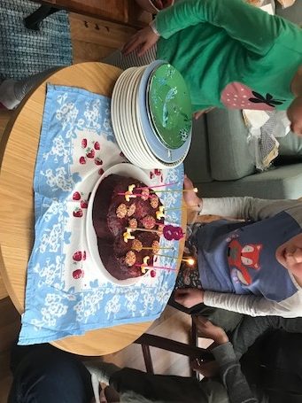 For me the highlight of the birthday festivities was the family afternoon tea at Maggie, Peter and Oli’s house. It was a big help not to have to have people over to our house, and their renovated space is lovely to be in. But more than that, Maggie is a warm host who had not only given the girls the gift of tickets with experiences to be spread out over the whole year, like ‘a sleepover’ ; ‘a camping trip’; ‘a tickle’ – but she also arranged for paper plane-making competitions which engaged the adults (including the girls’ godparents) as well as the kids. There was a competition for flying your plane the furthest down the corridor (won by Oli who scrunched his up into a ball and threw it the furthest); the best decorated plane (not judged in the end, but it was fun to do); and the longest in the air when thrown from the upstairs mezzanine (hard to tell who won that, it would depend whether you counted the two planes which were stuck up on the rafters). Given Steve’s training as a glider pilot, he was the judge.