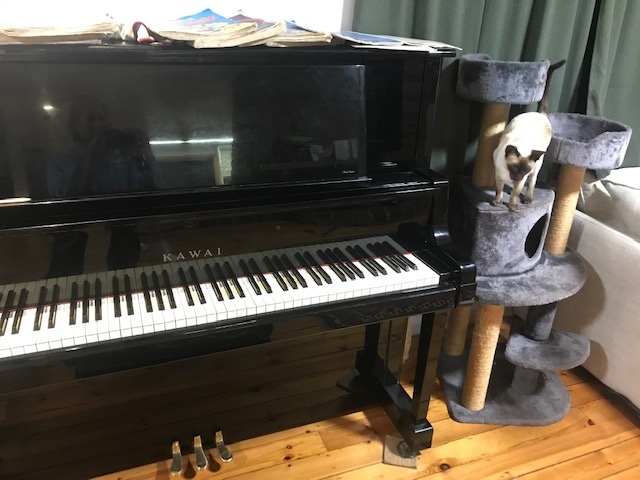 Lotus likes it too. She often comes and sits up in her cat tower beside the piano when I’m playing, either watching me or sleeping. Sometimes she jumps down and walks along the keys while I’m playing. Her piano music is distinctive and makes us smile. She just needs to apply herself a bit more to her practice.